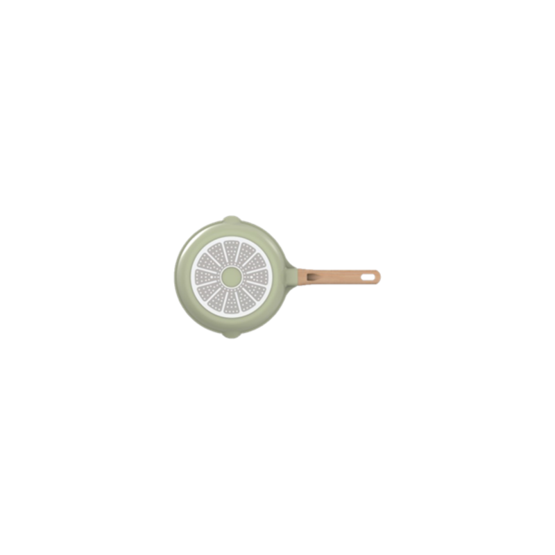 Denna stekpanna är tillverkad av gjuten aluminium av hög kvalitet och har en invändig keramisk beläggning som ger optimal matlagning och enkel rengöring. Handtaget är designat med en träimitation och en mjuk softgrip-yta, vilket gör det både bekvämt och ergonomiskt.
